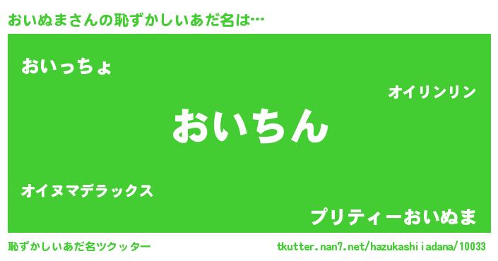 | ヒーロー風カッコイイあだ名 | 『ネオオイヌマ』『ウルトラおいぬまマン』 |
