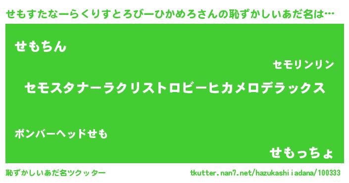 | ヘコむあだ名 | 『せもすたなーらくりすとろびーひかめろ(爆)』 |