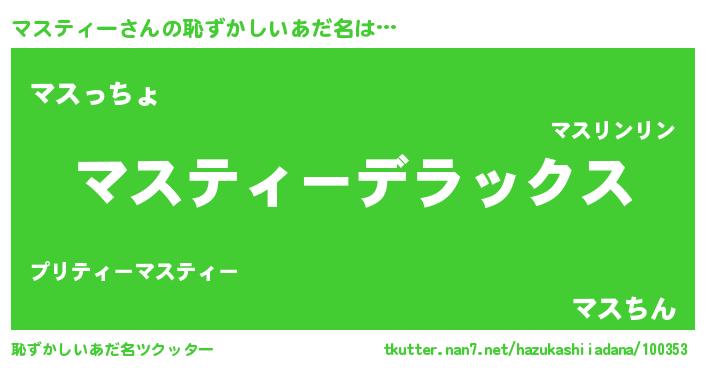 | 意味不明あだ名 | 『自称マスティー』『永久保存マスティー』 |