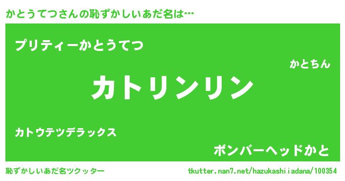 | 男性向けラノベタイトル風あだ名 | 『かとうてつの嫁は女の子じゃないと思った?』 |