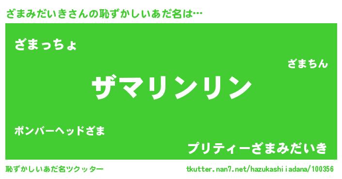 | 意味不明あだ名 | 『とにかく怪しいざまみだいき』 |