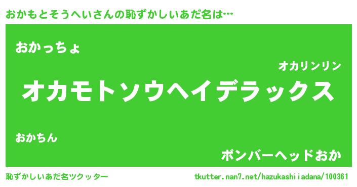 | 女子向けラノベタイトル風あだ名 | 『おかもとそうへいアンティーク』 |