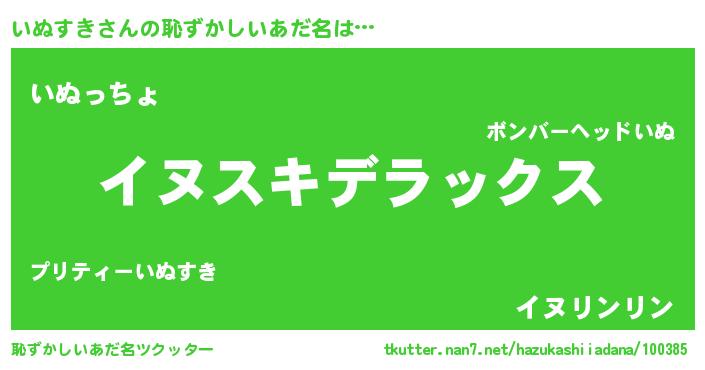 | 意味不明あだ名 | 『自称いぬすき』『なめこ科いぬすき属』 |