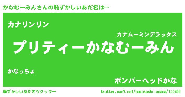 | ヘコむあだ名 | 『かなふぇ~』『かなを』『なまこ酢』 |