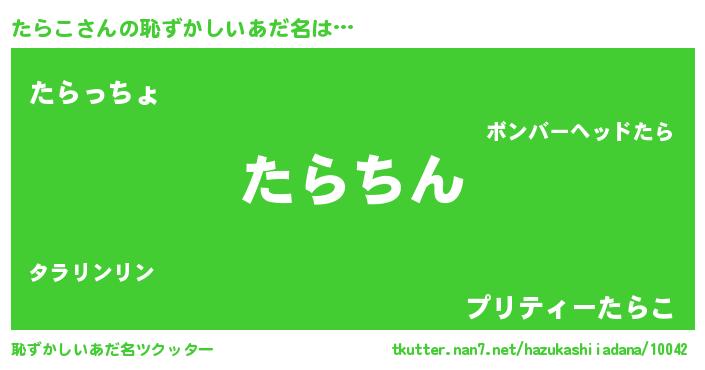 | ファンタジー風あだ名 | 『タラディッシュ』『エターナルタラコー』 |