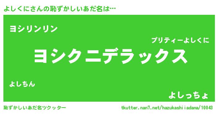 | 意味不明あだ名 | 『自称よしくに』『ヨモギ科よしくに属』 |