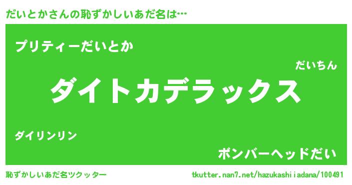 | 男性向けラノベタイトル風あだ名 | 『この素晴らしい世界にだいとかを!』 |