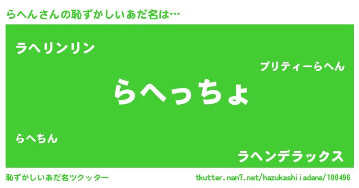 | ヘコむあだ名 | 『酢こんぶ』『らへっ子』『らへもー』 |
