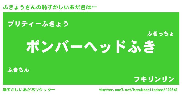 | ヘコむあだ名 | 『ふきにゅー』『ふきを』『なまこ酢』 |