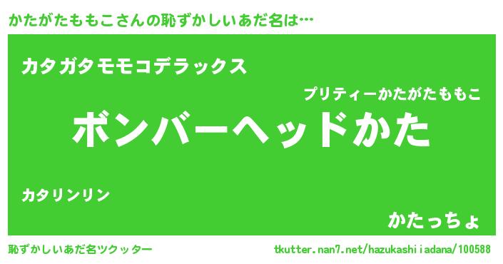 | 男性向けラノベタイトル風あだ名 | 『おまえをオタクにしてやるから、俺をかたがたももこにしてくれ! 』 |