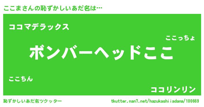 | ヒーロー風カッコイイあだ名 | 『慈愛の使者ここま』『仮面ココダー』 |