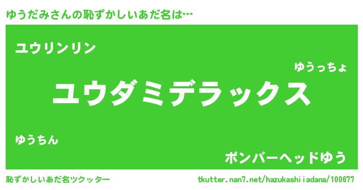 | 男性向けラノベタイトル風あだ名 | 『ゆうだみに滅ぼされるだけの簡単なお仕事です』 |