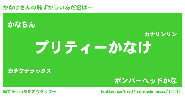 | ヘコむあだ名 | 『かなにー』『かなけ(笑)』 |