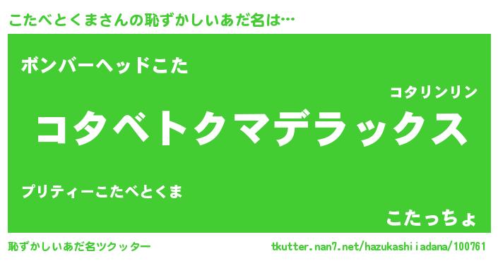 | 意味不明あだ名 | 『自称こたべとくま』 |