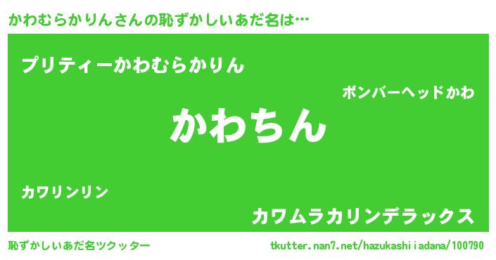 | ヘコむあだ名 | 『かわむらかりん(笑)』『かわっふぃ~』 |