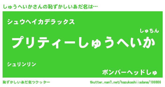 | ヘコむあだ名 | 『しゅっふぃ~』『しゅうへいか(震え声)』 |