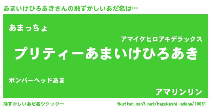 | 胡散臭い通販商品みたいなあだ名 | 『億万長者になれる霊験あらたかなお札…その名も「あまいけひろあき」』 |