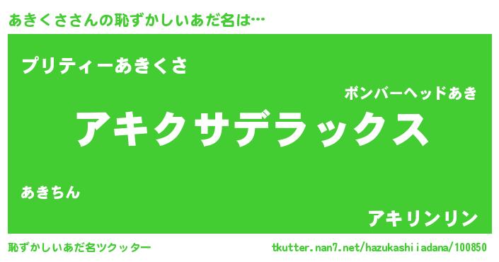| 男性向けラノベタイトル風あだ名 | 『魔法科高校のあきくさ』 |