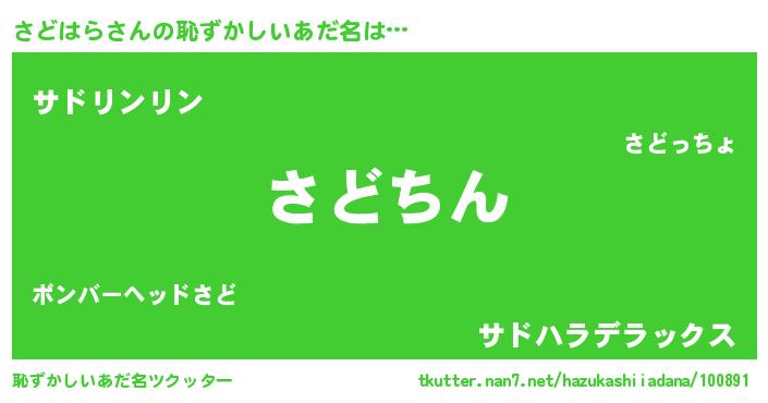 | 意味不明あだ名 | 『永久保存さどはら』『自称さどはら』 |