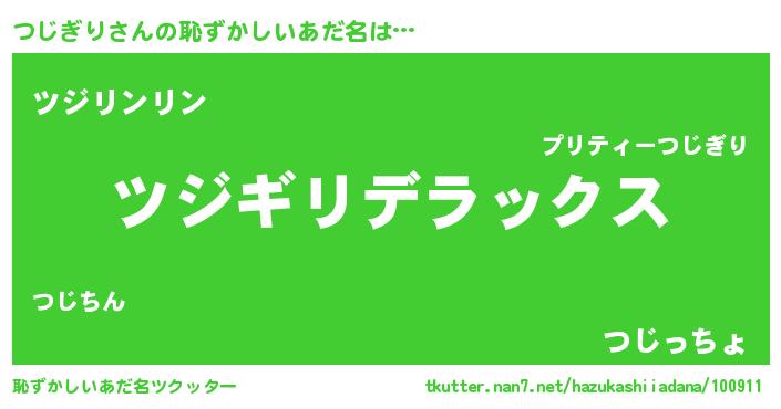 | 男性向けラノベタイトル風あだ名 | 『つじぎりに滅ぼされるだけの簡単なお仕事です』 |