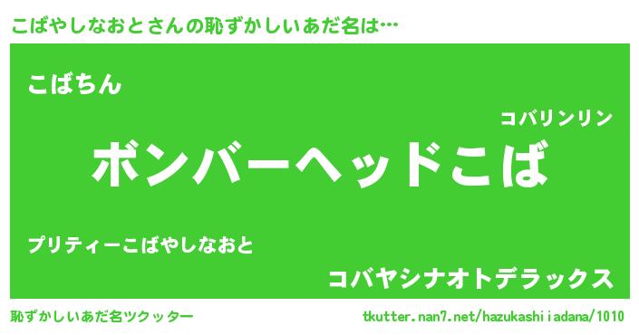 | ヘコむあだ名 | 『こばやしなおと(苦笑)』『こばぷりん』 |