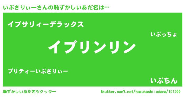 | 男性向けラノベタイトル風あだ名 | 『いぶさりぃーの嫁は女の子じゃないと思った?』 |