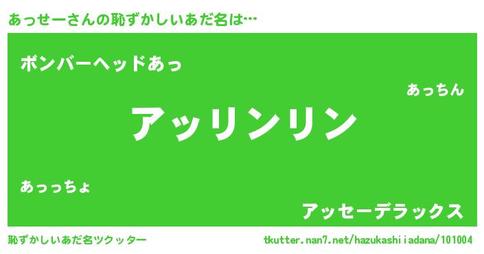 | ヒーロー風カッコイイあだ名 | 『暗黒騎士アッ』『正義の使者あっせー』 |