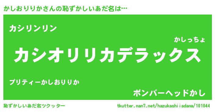 | 意味不明あだ名 | 『自称かしおりりか』 |