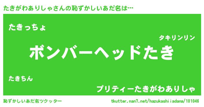 | ヘコむあだ名 | 『酢こんぶ』『たきっふぃ~』 |