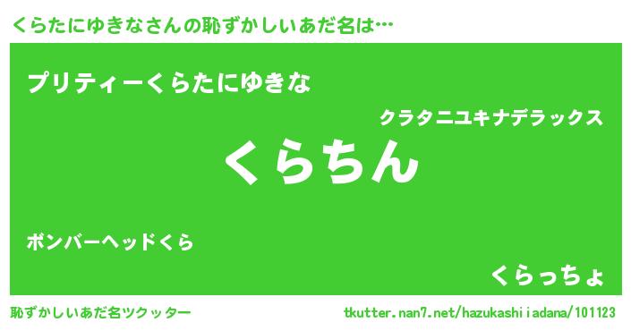 | 可愛いあだ名 | 『くーみん』『くらたにゆきなママ』 |