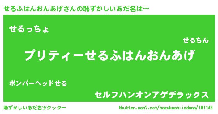 | 伝説のあだ名 | 『伝説のスナイパーせるふはんおんあげ』 |