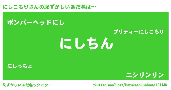 | 意味不明あだ名 | 『永久保存にしこもり』 |