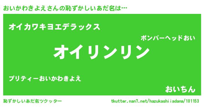 | 意味不明あだ名 | 『とにかく怪しいおいかわきよえ』 |