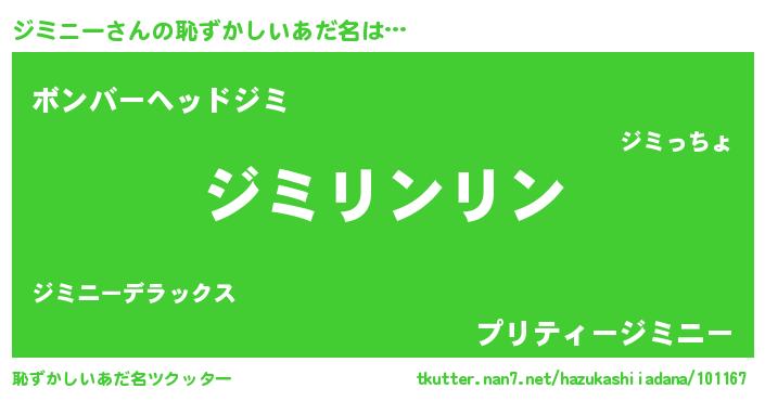 | ヒーロー風カッコイイあだ名 | 『幻影騎士ジミ』『正義の使者ジミニー』 |