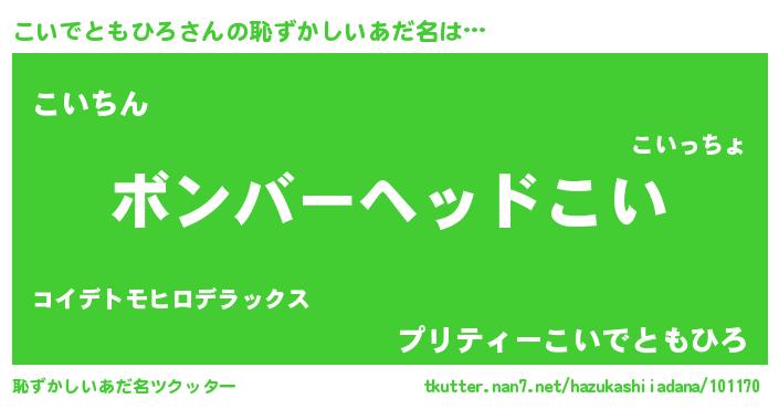 | 可愛いあだ名 | 『こいちゅっちゅ』『こいでともひろママ』 |