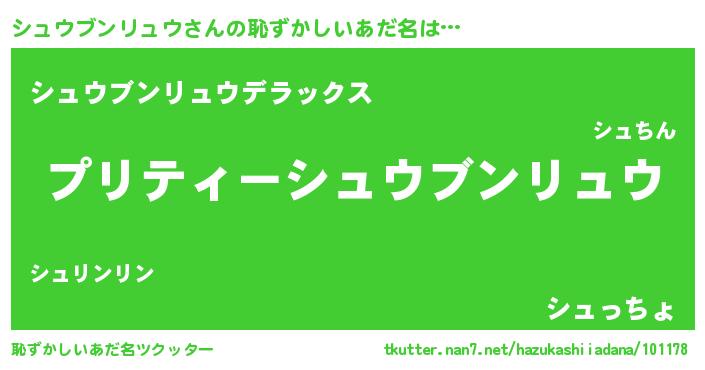 | ヘコむあだ名 | 『シュもー』『なまこ酢』『シュお』 |