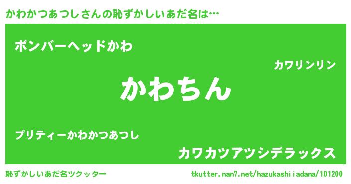 | ヘコむあだ名 | 『かわかつあつし(笑)』『かわお』 |