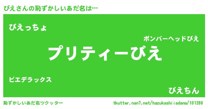 | ヘコむあだ名 | 『びえもー』『酢こんぶ』『びえ(笑)』 |