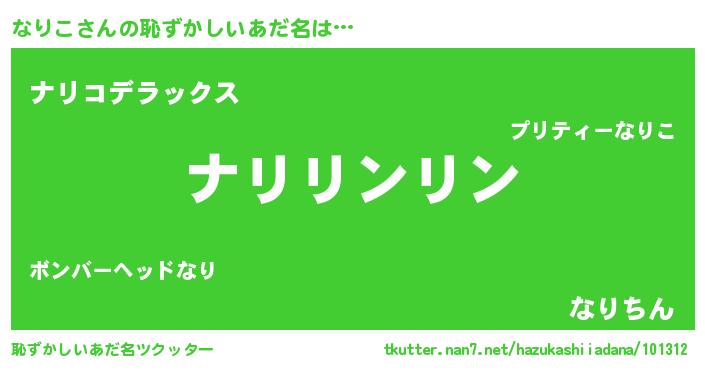 | 胡散臭い通販商品みたいなあだ名 | 『信頼と実績のサプリメント…その名も「なりこ」』 |