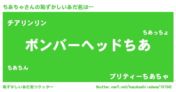 | ヘコむあだ名 | 『ちあ太郎』『ちあにー』『なまこ酢』 |