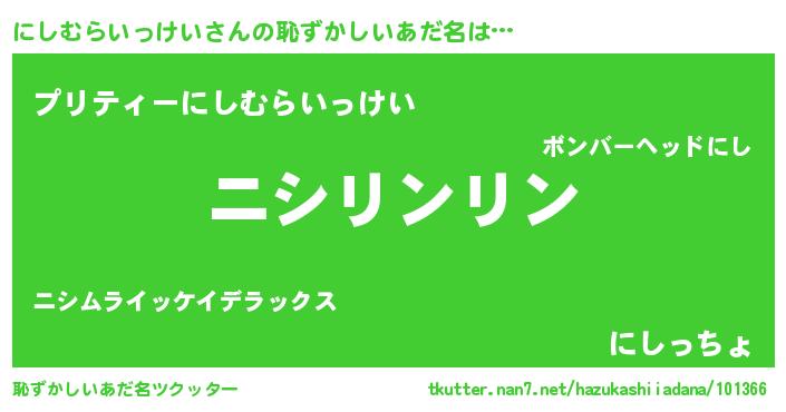 | 意味不明あだ名 | 『とにかく怪しいにしむらいっけい』 |