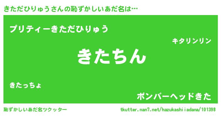 | 男性向けラノベタイトル風あだ名 | 『きただひりゅう~年齢イコール彼女いない歴の魔法使い~』 |