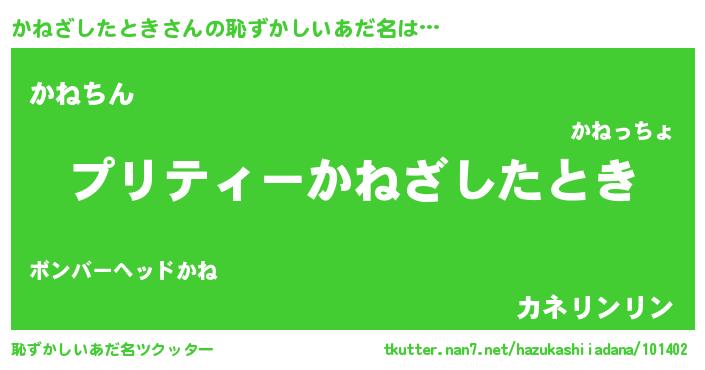 | ヒーロー風カッコイイあだ名 | 『スーパーカネザシタトキ』 |