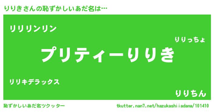| 男性向けラノベタイトル風あだ名 | 『りりき~年齢イコール彼女いない歴の魔法使い~』 |