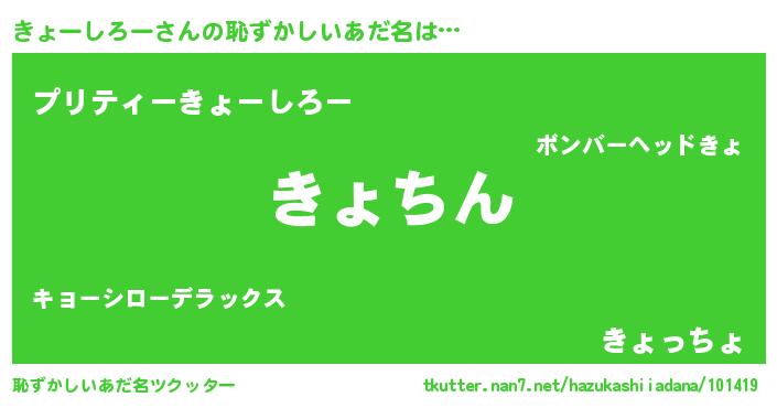 | ヘコむあだ名 | 『きょーしろー(笑)』『きょっふぃ~』 |