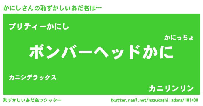 | ヘコむあだ名 | 『かにもー』『かにお』『酢こんぶ』 |