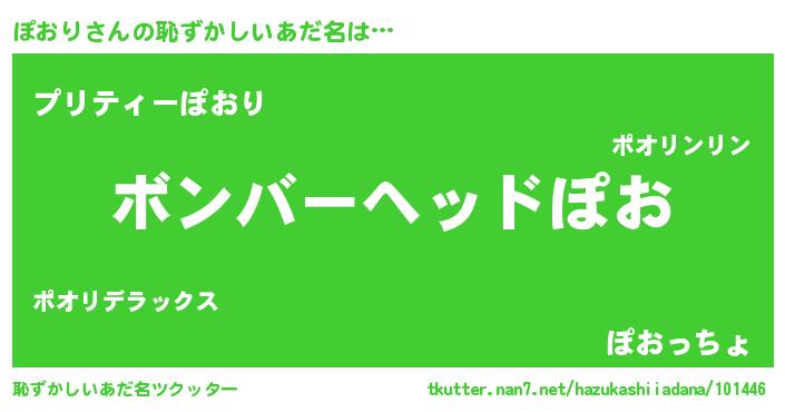 | ヒーロー風カッコイイあだ名 | 『正義の使者ぽおり』『スーパーポオリ』 |
