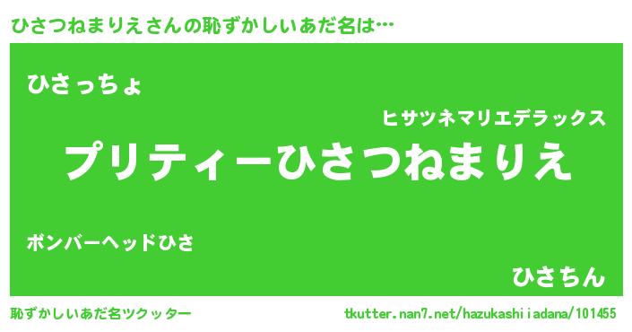 | 意味不明あだ名 | 『住所不定無職ひさつねまりえ(3歳)』 |