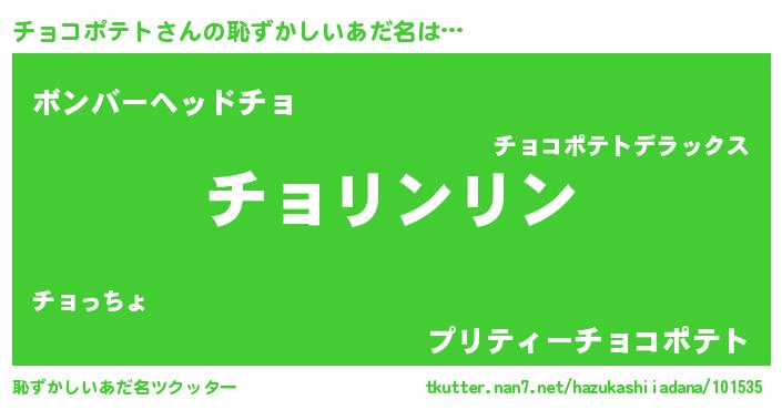| 意味不明あだ名 | 『とにかく怪しいチョコポテト』 |