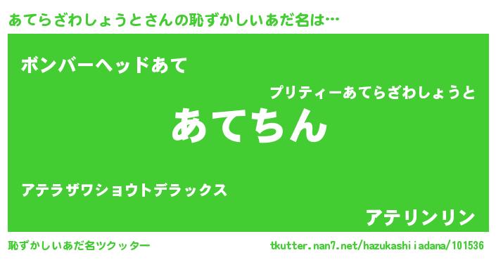 | ヘコむあだ名 | 『あてらざわしょうと(小並感)』『あてお』 |